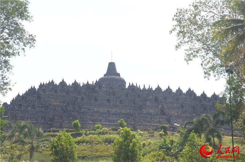 The gorgeous Borobudur Temple Compounds is one the top of a mountain. (People's Daily Online/Du Mingming)