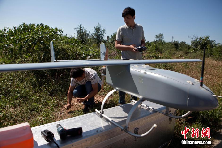 The Beijing police deploy a drone to the mountainous region in Yanqing County, located northwest of the city, to conduct counter-drug reconnaissance mission on Sept. 4, 2014. (Photo/Chinanews.com)