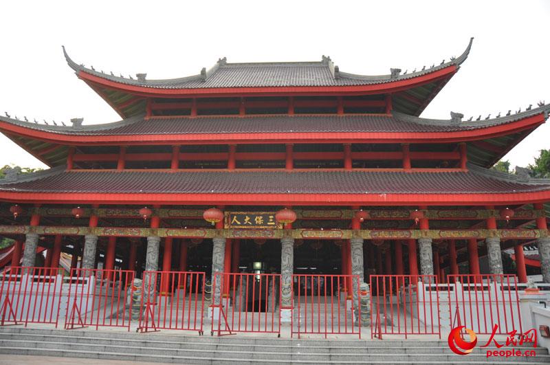 3.The 3-storey-high main temple of Sam Po Kong. The plaque on it reads "Majesty Sanbo". (People's Daily Online/Li Haixia)