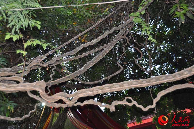 Local people think highly of the iron-styled cirrus in Sam Po Kong because they regard them as anchor chains of Zheng He's fleet. (People's Daily Online/Li Haixia)