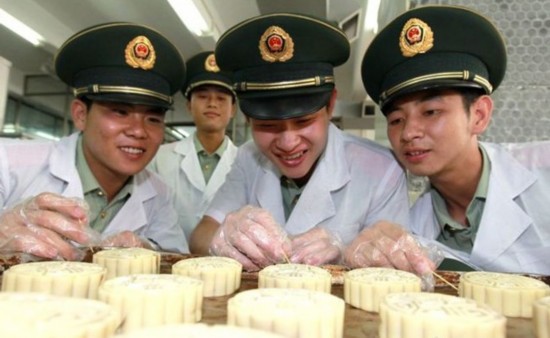 Soldiers presenting DIY ‘moon cakes’ (2)