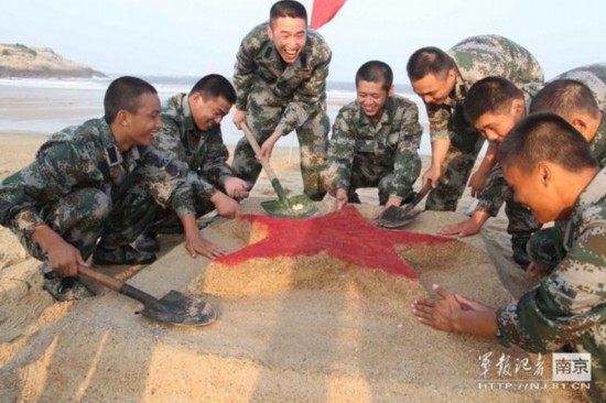 Soldiers make “sand moon cakes”. (Photo/http://www.81.cn/)