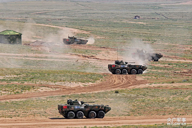 Left wing of the Chinese force captures launch field in Peace Mission 2014, a joint anti-terror military drill conducted by forces of the Shanghai Cooperation Organization (SCO) countries. (Photo/mil.cnr.cn)