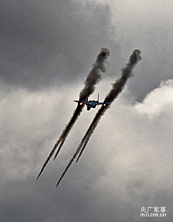 A Chinese F-11 fighter carries out accurate strikes on ground target in Peace Mission 2014, a joint anti-terror military drill conducted by forces of the Shanghai Cooperation Organization (SCO) countries. (Photo/mil.cnr.cn)