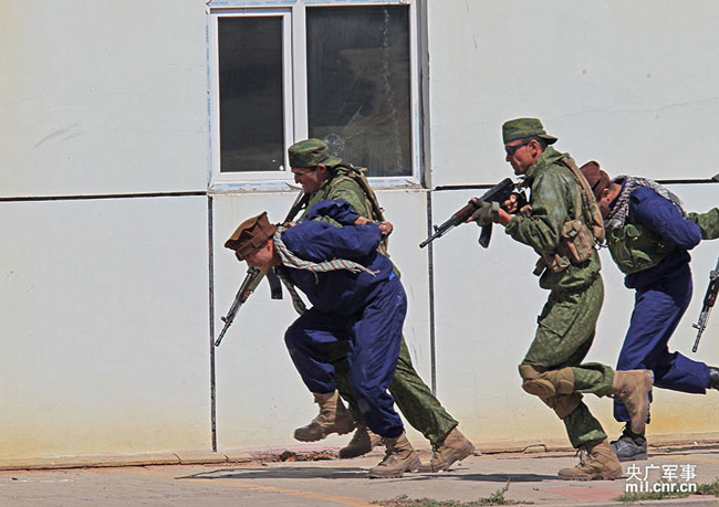 Terrorist caught alive in Peace Mission 2014, a joint anti-terror military drill conducted by forces of the Shanghai Cooperation Organization (SCO) countries. (Photo/mil.cnr.cn)