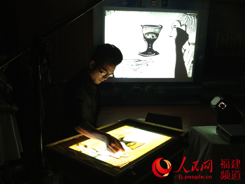 Xiao Gang performs sand paintings. (Photo/people.cn)