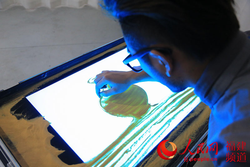 Xiao Gang performs sand paintings. (Photo/people.cn)
