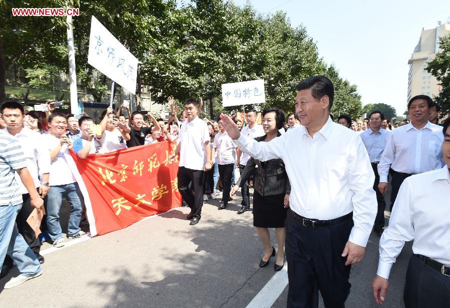 Xi was speaking at Beijing Normal University, where he visited labs and teaching sessions, talking with students and faculty.