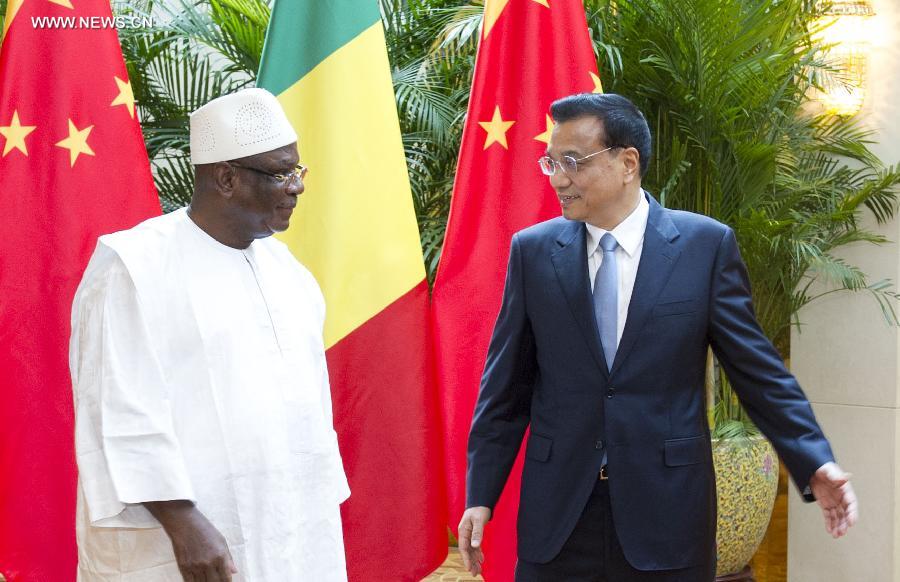 Chinese Premier Li Keqiang (R) meets with Malian President Ibrahim Boubacar Keita on the sidelines of the 2014 New Leaders Meeting of the World Economic Forum, or the Summer Davos, in Tianjin, north China, Sept. 10, 2014. (Xinhua/Wang Ye)