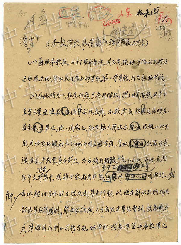 On August 11, the Central Committee of the CPC released “Our Tasks since the Surrender of Japan”. (Photo/China's State Archives Administration)