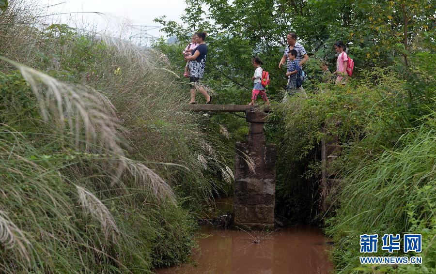 The couple sends pupils home on Sept. 9, 2014. (Xinhua/Li Xiangyu)