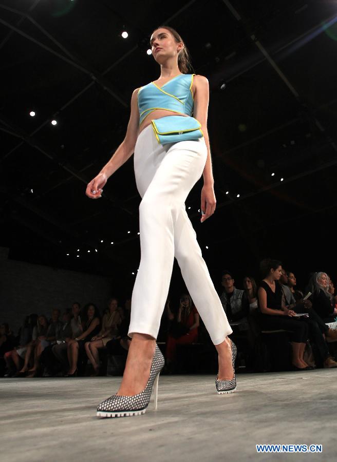 A Model presents a creation of the Spring/Summer 2015 ANGEL SANCHEZ collection during the New York Fashion Week in New York, the United States, Sept. 8, 2014. (Xinhua/Cheng Li)