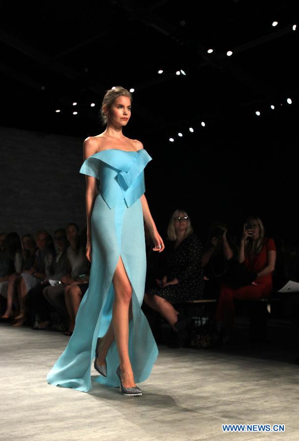 A Model presents a creation of the Spring/Summer 2015 ANGEL SANCHEZ collection during the New York Fashion Week in New York, the United States, Sept. 8, 2014. (Xinhua/Cheng Li)