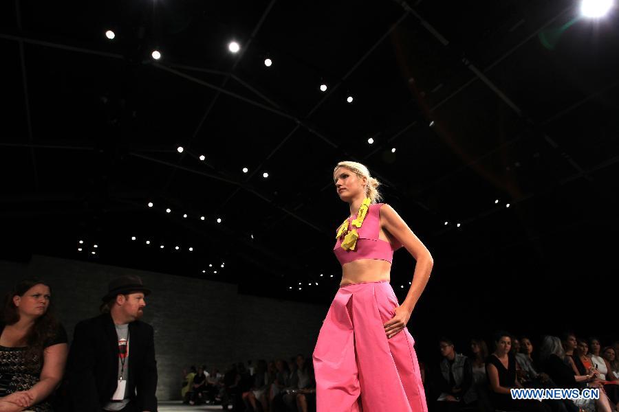 A Model presents a creation of the Spring/Summer 2015 ANGEL SANCHEZ collection during the New York Fashion Week in New York, the United States, Sept. 8, 2014. (Xinhua/Cheng Li)