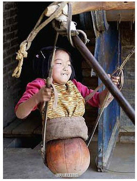 Qian Hongyan plays on a swing. (Photo/weibo.com)