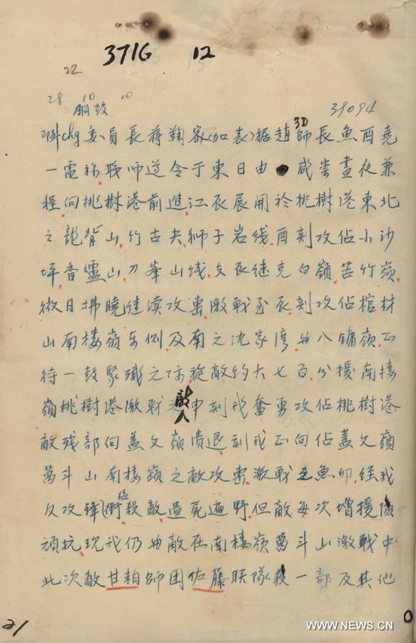 China on Thursday released archives of an important battle against the Japanese army in 1939 which engaged more than 100,000 Japanese soldiers and 240,000 Chinese. (Xinhua)