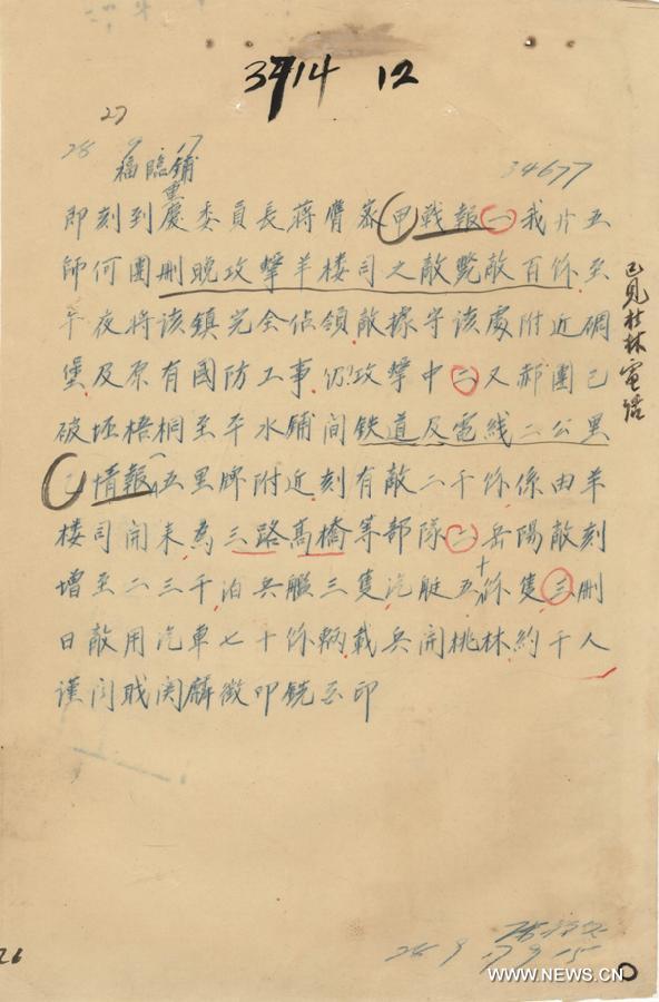 China on Thursday released archives of an important battle against the Japanese army in 1939 which engaged more than 100,000 Japanese soldiers and 240,000 Chinese. (Xinhua)