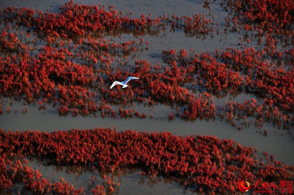 Amazing scenery of Red beach in Panjing, northeast China's Liaoning province. (Photo/People's Daily Online)
