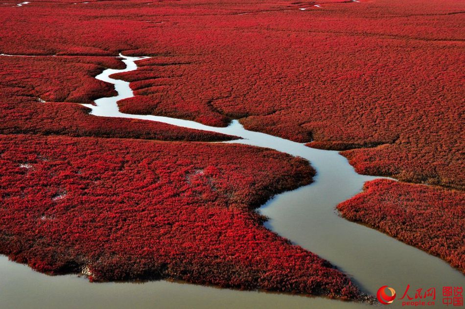 Red beach (Honghaitan) in Panjin, northeast China's Liaoning province, is a national-level 4A scenic zone. It is famous for well-preserved and large-scale wetland.