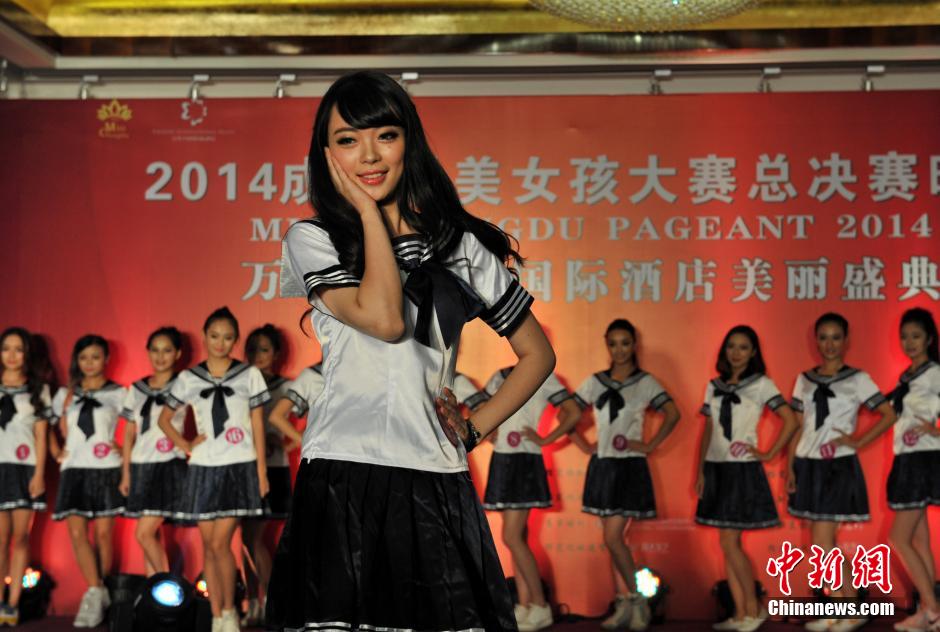 A contestant demonstrates in student uniform in the final competition on Sept. 10, 2014. (CNS/Liu Zhongjun)
