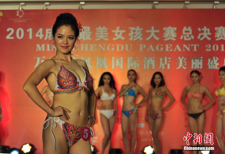 Wang Lirong, contestant No. 5, shows in swimsuit on Sept. 10, 2014. (CNS/Liu Zhongjun)