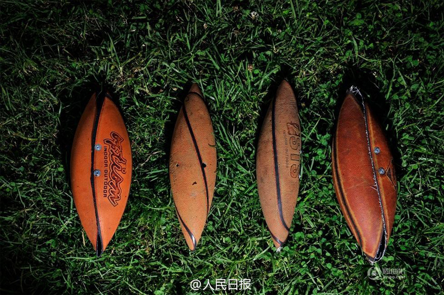 Rugby balls made by Bi Shoujin. (cri.cn/Yin Liang)
