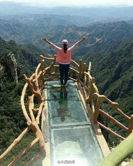 The construction of the longest, widest, and highest glass suspension walkway in China is to be completed soon in Baishi Mountain Resort, Laiyuan county of north China’s Hebei province, according to sources from the resort. It is estimated that the walkway will be open to public in the middle of September 2014.  (Photo/Weibo)