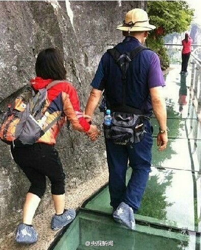 The construction of the longest, widest, and highest glass suspension walkway in China is to be completed soon in Baishi Mountain Resort, Laiyuan county of north China’s Hebei province, according to sources from the resort. It is estimated that the walkway will be open to public in the middle of September 2014. (Photo/Weibo)