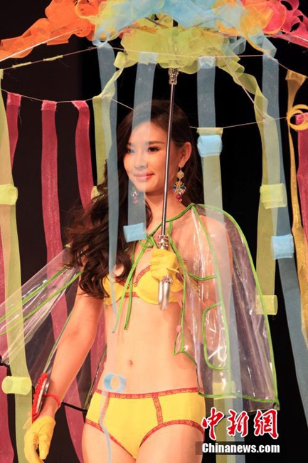 Fourteen belles compete in the 2014 Decleor Miss China in Shanghai on the night of Sept. 13, 2014. After three sessions including opening show, lingerie show and evening show, Xu Naiqing from central China's Henan province claimed the title of 2014 miss China and the golden diamond crown valuing 3.5 million yuan. (CNS/Pan Suofei)