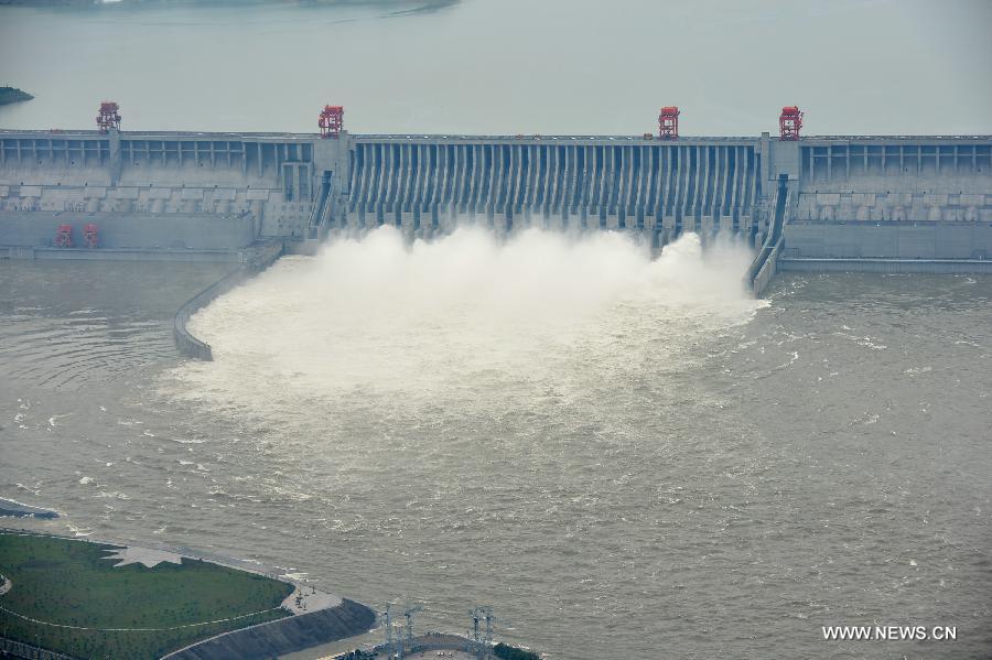 Photo taken on Sept. 15, 2014 shows the Three Gorges Dam, a gigantic hydropower project on the Yangtze River, in Yichang City, central China's Hubei Province. The dam started a new round of experimental impoundment on Monday morning, where the water level is expected to reach 175 meters by the end of October or November. (Xinhua/Zheng Jiayu) |
