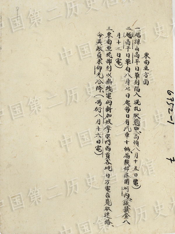 The records on the surrender of Japan in Southeast Asia. (Photo/Second Historical Archives of China)