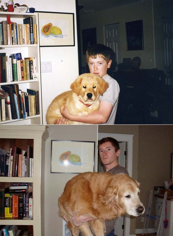 A group of photos show how pets grow up with their owners. (Photo Source: gmw.cn)