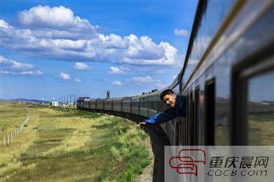 You Yikun Passes through the grasslands of Inner Mongolia on the K3 International Train. (Photo/ CQCB.com) |