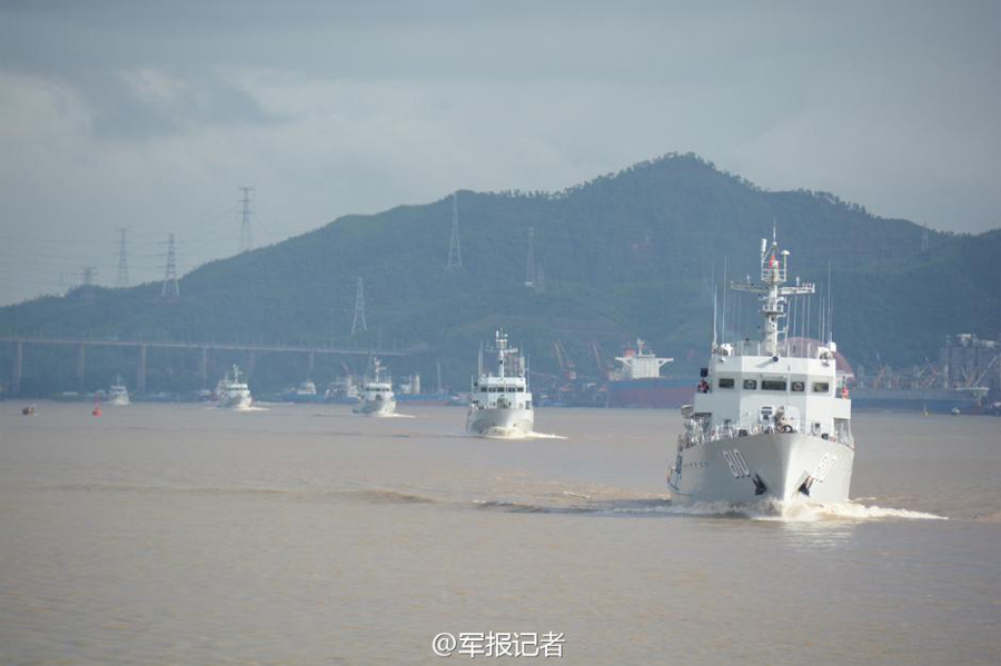 Photo taken on Sept. 15, 2014 show a minesweeper of South China Sea Fleet successfully detonating a smart mine in training. (Photo./81.cn)