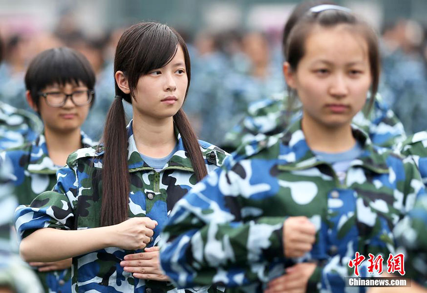 Female freshmen participate in military training in Nanjing. (CNS/Yang Bo)