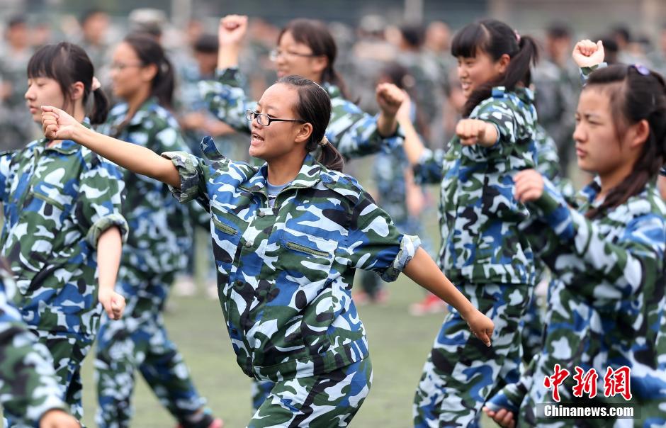 Female freshmen participate in military training in Nanjing. (CNS/Yang Bo)