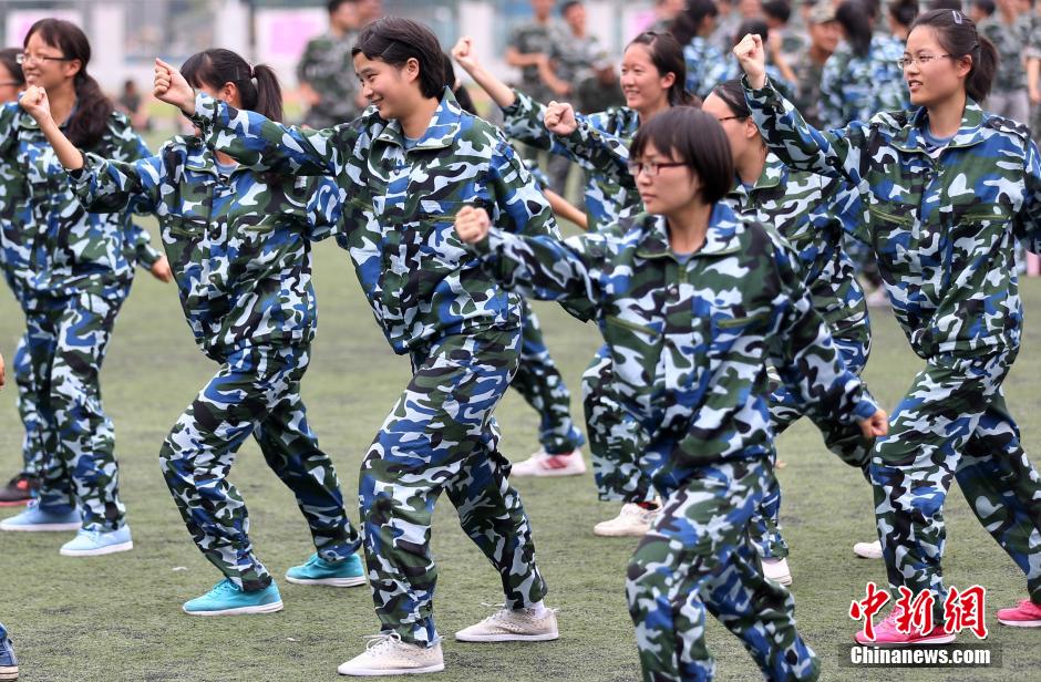 Female freshmen participate in military training in Nanjing. (CNS/Yang Bo)