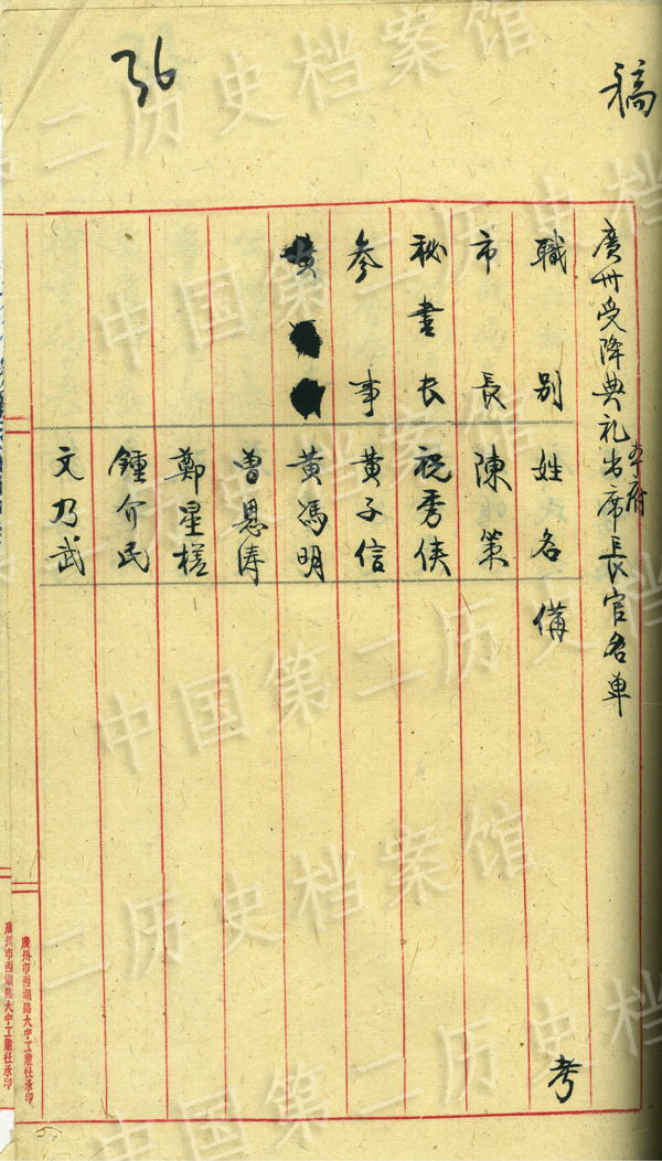 The list of officers attending the surrender ceremony in Guangzhou on September 16, 1945. (Photo/ Guangzhou Municipal Archives)