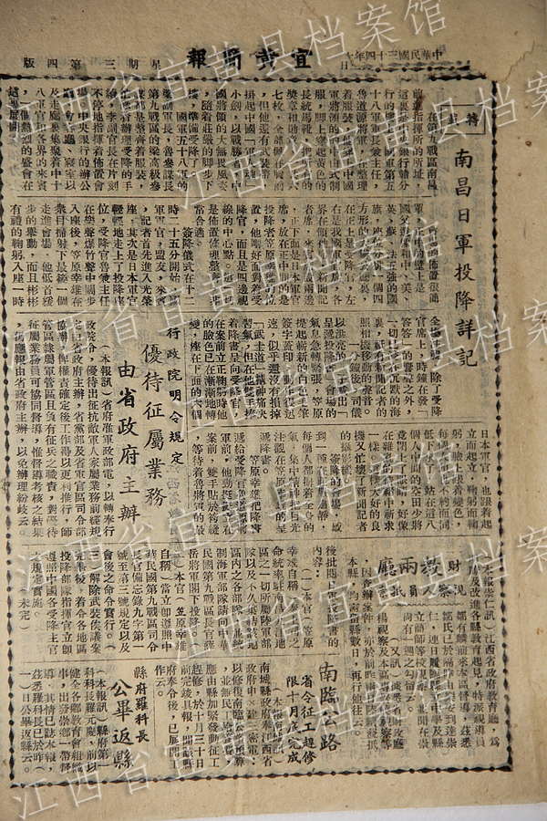 Yihuang Briefing reprinted the article titled “A Detailed Record of the Surrender of Japanese Army in Nanchang” in October 1945. (Photo/Yihuang County Archives)