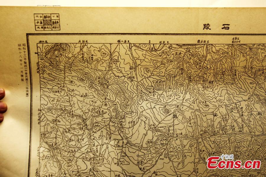 An employee of Administration of Surveying, Mapping and Geoinformation of Central China’s Henan province shows a military map drawn by Japanese army during the Japanese war of aggression against China on Wednesday, September 17, 2014. The detailed topographical map of China is marked with a measuring scale of 1:50,000. The map is exhibited to commemorate the 83rd anniversary of the "9.18 Incident," or "Mukden Incident," which marks the beginning of the 14-year war against Japanese aggression. On September 18, 1931, Japanese troops blew up a section of the railway under their control near Shenyang, and then accused Chinese troops of sabotage as a pretext for attack. They bombarded barracks near Shenyang the same evening, beginning a large-scale armed invasion of northeast China. [Photo: China News Service/ Wang Zhongju] |