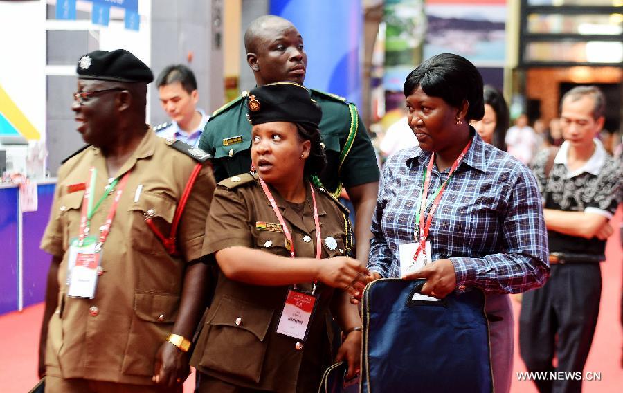 African visitors are seen at the 11th China-ASEAN Expo (CAEXPO) in Nanning, capital of south China's Guangxi Zhuang Autonomous Region, Sept. 18, 2014. The annual CAEXPO attracted worldwide visitors and businessmen who searched for markets and business opportunities. (Xinhua/Zhang Ailin)