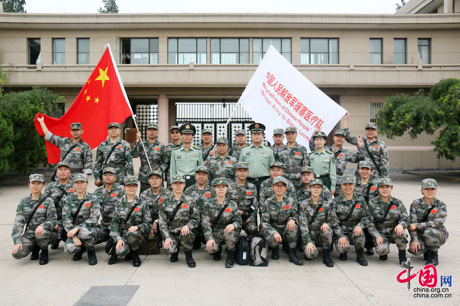 The medical team of the Chinese People's Liberation Army (PLA), consisting of 30 people from the 302 Military Hospital of the PLA, left Beijing for Sierra Leone via a special airplane on September 16, 2014, with the mission of treating Ebola patients.