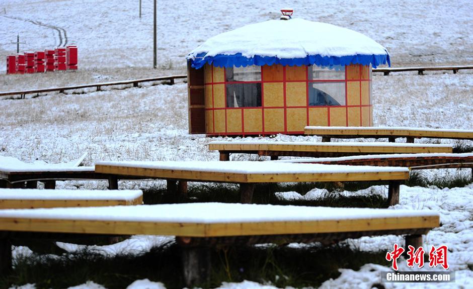 Hongyuan Grassland experiences its first autumn snow this autumn on Sept.16, 2014. Hongyuan Grassland (literally red prairie or red plain), located in the middle of the Aba Tibetan and Qiang Autonomous Prefecture at the north of Sichuan, is known as "Gold Sands and Silver Sands" of plateau for its unique natural landscape and abundant natural resources. (Chinanews.com/Xie Hongcheng) |