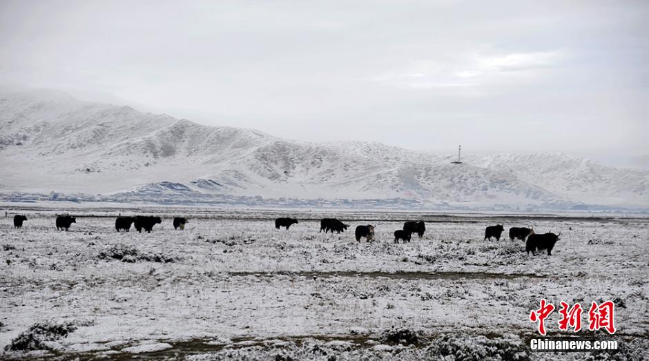 Hongyuan Grassland experiences its first autumn snow this autumn on Sept.16, 2014. Hongyuan Grassland (literally red prairie or red plain), located in the middle of the Aba Tibetan and Qiang Autonomous Prefecture at the north of Sichuan, is known as "Gold Sands and Silver Sands" of plateau for its unique natural landscape and abundant natural resources. (Chinanews.com/Xie Hongcheng)