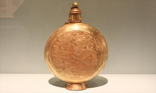 A 15th century golden canteen with imperial dragon design (Photo: Sun Wei/GT) |
