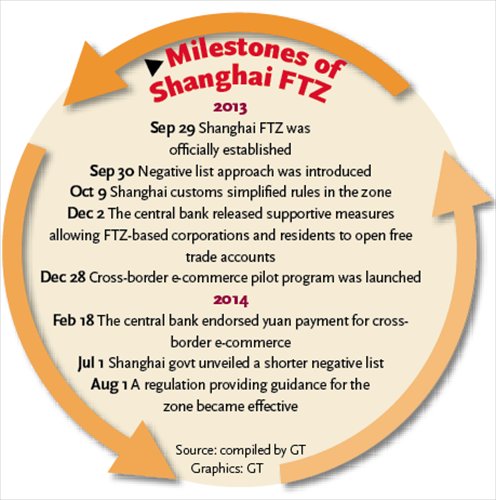 "The FTZ has made great efforts to facilitate trade and has also made progress in institutional reform during the past year. Its efforts have started to show initial results," Xu Hongcai, director of the Department of Information under the China Center for International Economic Exchanges, told the Global Times Thursday.