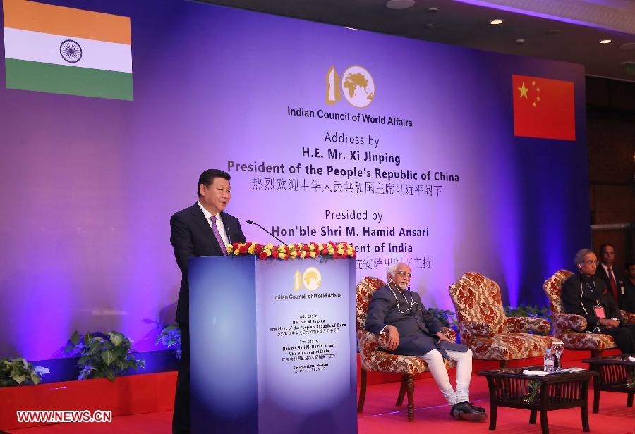 Chinese President Xi Jinping delivers a speech at the Indian Council of World Affairs in New Delhi, India, Sept. 18, 2014. (Xinhua/Pang Xinglei)
