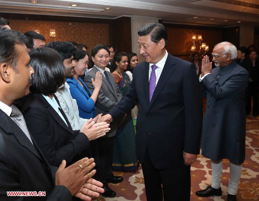 Chinese President Xi Jinping meets with youths from China and India after delivering a speech at the Indian Council of World Affairs in New Delhi, India, Sept. 18, 2014. (Xinhua/Pang Xinglei)