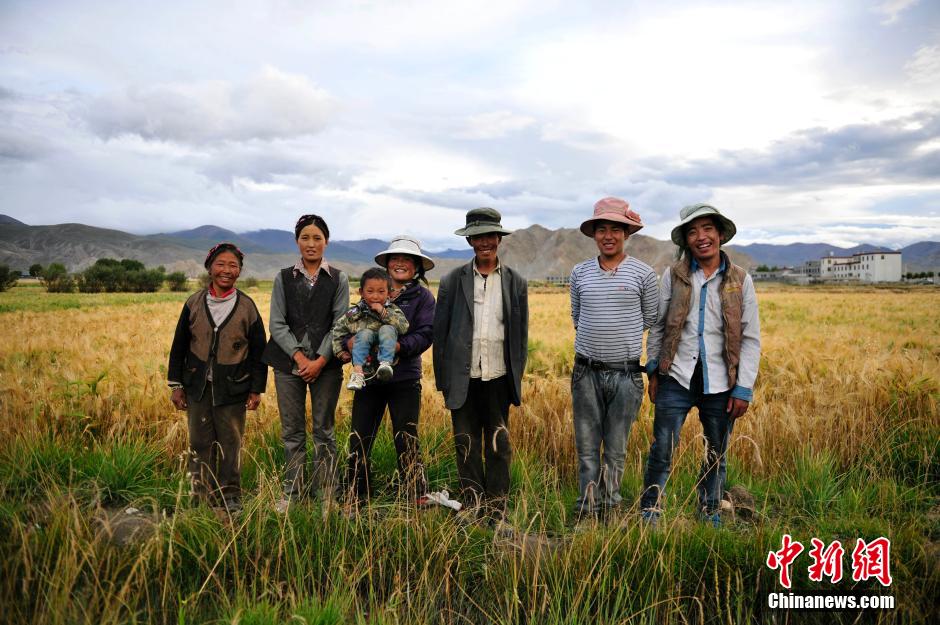 Highland barley harvest has begun in Tibet. In Lhasa and Shigatse, farmers are busy harvesting the highland barley in lands covered with golden ears of barley. (Chinanews.com/Tang Zhaoyang)