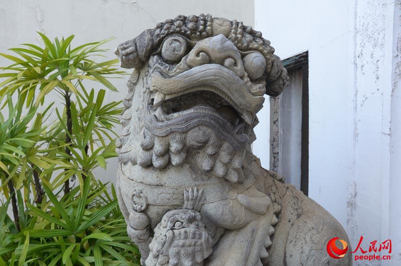 A stone lion from China in the Grand Palace. (People's Daily Online/Du Mingming)